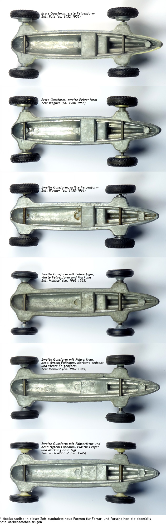 Nur Johannes Möbius konnte ein Interesse haben, seine Modelle zu markieren, so wie es ja auch schon zu Wagners Zeiten war. Es ist deshalb anzunehmen, dass er zumindest die Formen für die neuen Modelle mit Fahrer angefertigt bzw. umgearbeitet hat. Aber auch wenn man heute meist Modelle mit Fahrer findet, wissen wir über diese Zeit am wenigsten. Wir wissen nicht, wie oder von wem die Autos vertrieben wurden. Wagner kannte die Modelle des Ferrari und des Porsche nicht, als Axel Kirchner ihm diese zeigte. Bis Mitte der 1960er Jahre konnte Johannes Möbius seinen Betrieb für Werkzeug und Druckguss noch aufrecht erhalten. Danach verliert sich jede Spur zu seinem Betrieb und seiner Person.
